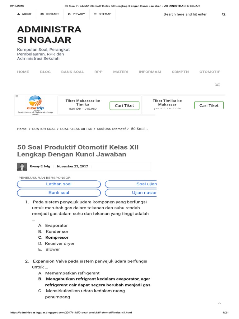 50 Soal Produktif Otomotif Kelas Xii Lengkap Dengan Kunci Jawaban Administrasi Ngajar