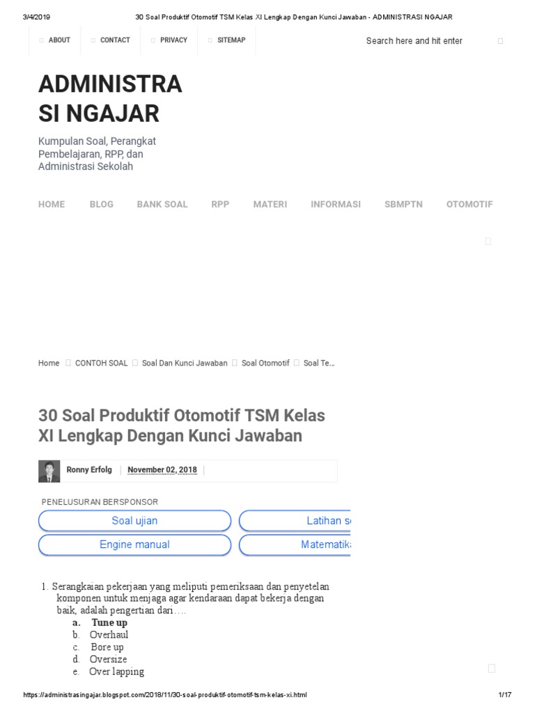 30 Soal Produktif Otomotif Tsm Kelas Xi Lengkap Dengan Kunci Jawaban Administrasi Ngajar