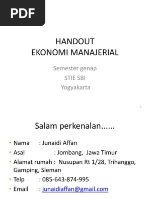 Soal Latihan UN Ekonomi SMA beserta Kunci-Pelaksanaan Ujian Nasional tahun 2020 sudah di depan mata UN tingkat SMASMK dan sederajat dijadwalkan akan dilaksanakan sekitar pertengahan bulan April 2020 mendatang jika tidak ada perubahan mengingat pada tahun ini bersamaan dengan agenda nasional Pemilihan Umum. Deskripsi Singkat Mata kuliah ekonomi manajerial ini merupakan mata kuliah wajib di Program Studi Manajemen jenjang S-1. Download Materi Ekonomi Manajerial Karya Dominick Salvatore BUKU dengan judul Managerial Economics in a Global Economy with Economic Applications Card ini merupakan buku teks untuk mata kuliah ekonomi manajerial yang diberikan di sebagian besar fakultas ekonomi dan program bisnis.