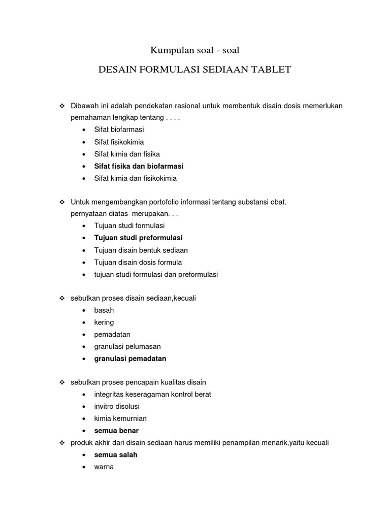 Kumpulan Soal Soal Desain Formulasi Sediaan Tablet