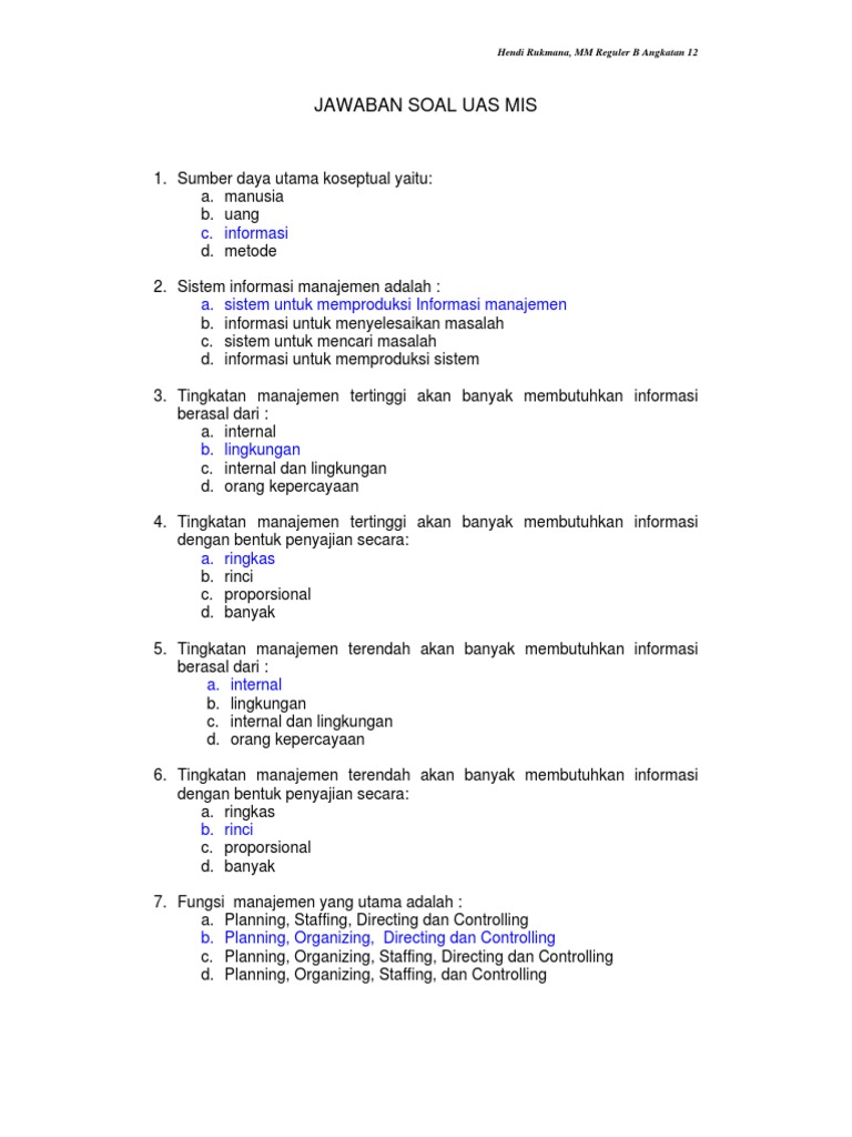 Contoh Soal Uas Sistem Informasi Manajemen Contoh Soal Terbaru