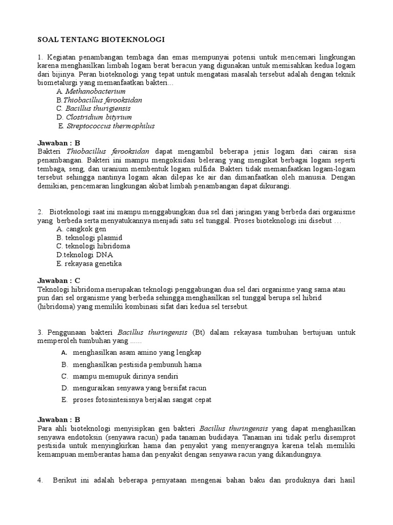 40 Soal Dan Jawaban Tentang Bioteknologi Muttaqin Id