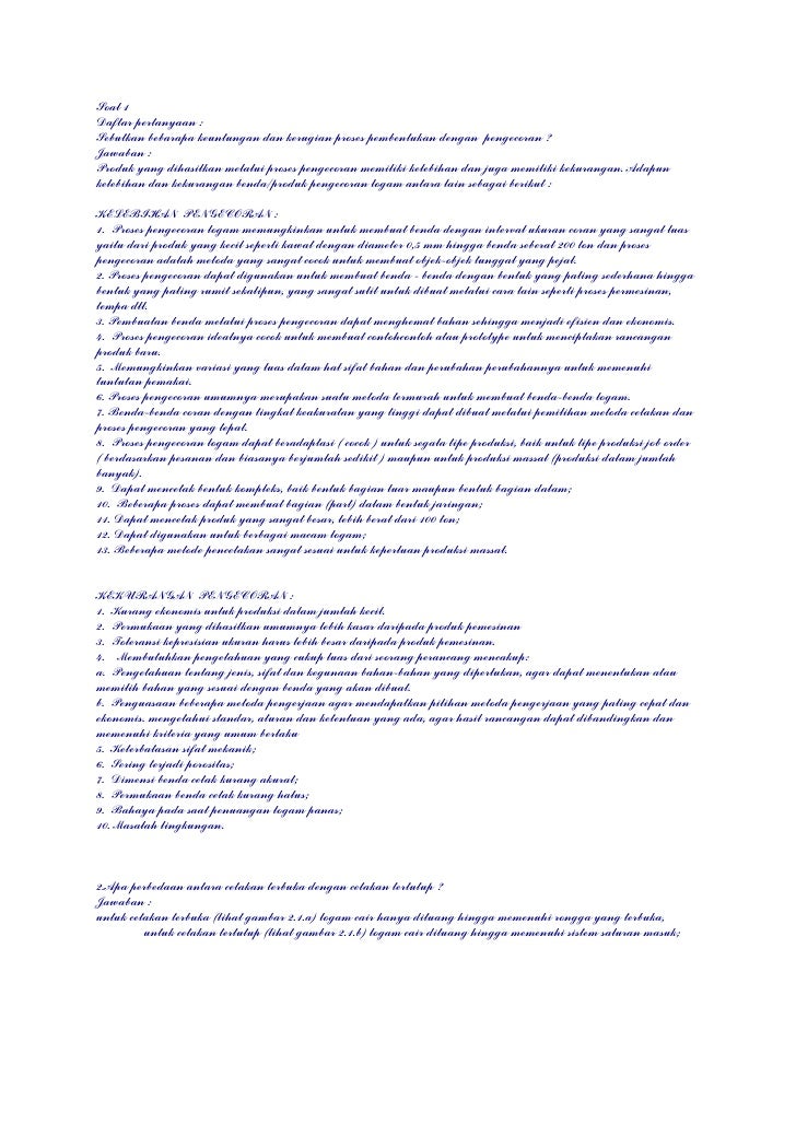Soal Dan Jawaban Teknik Pengecoran Logam