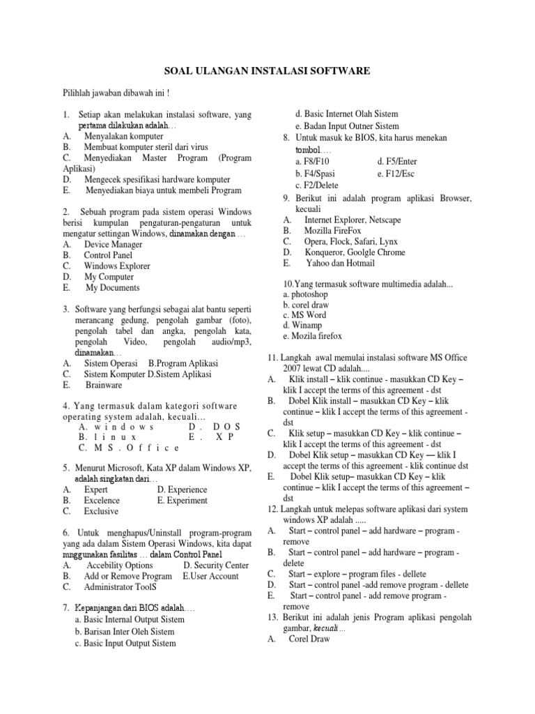 Soal pilihan ganda dan jawaban instalasi software that we will agreed offer. Aplikasi Editor grafik vector b. Software yang digunakan untuk membuat sebuah desain.